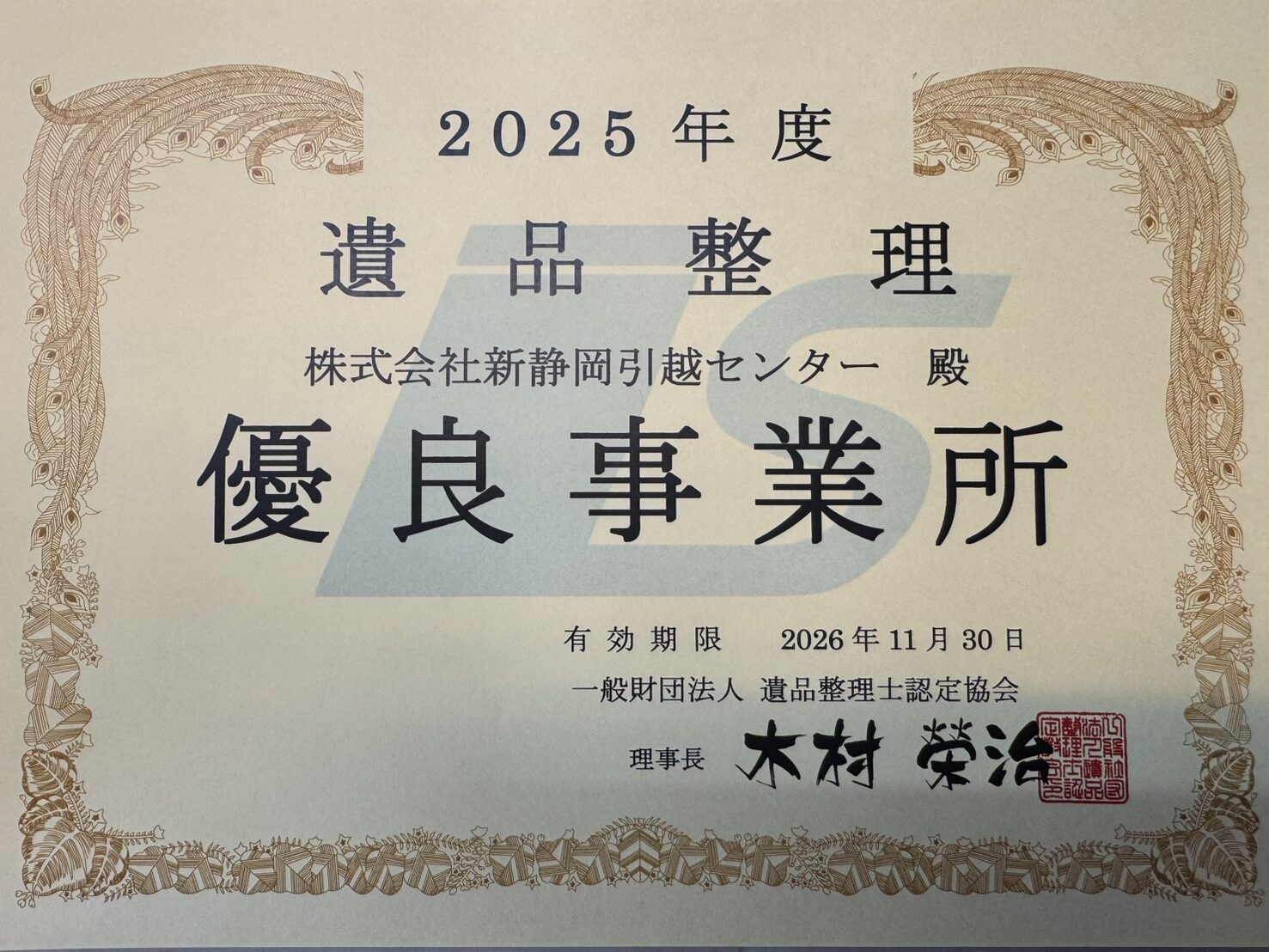 **「優良事業所」**として正式に認定されました。
