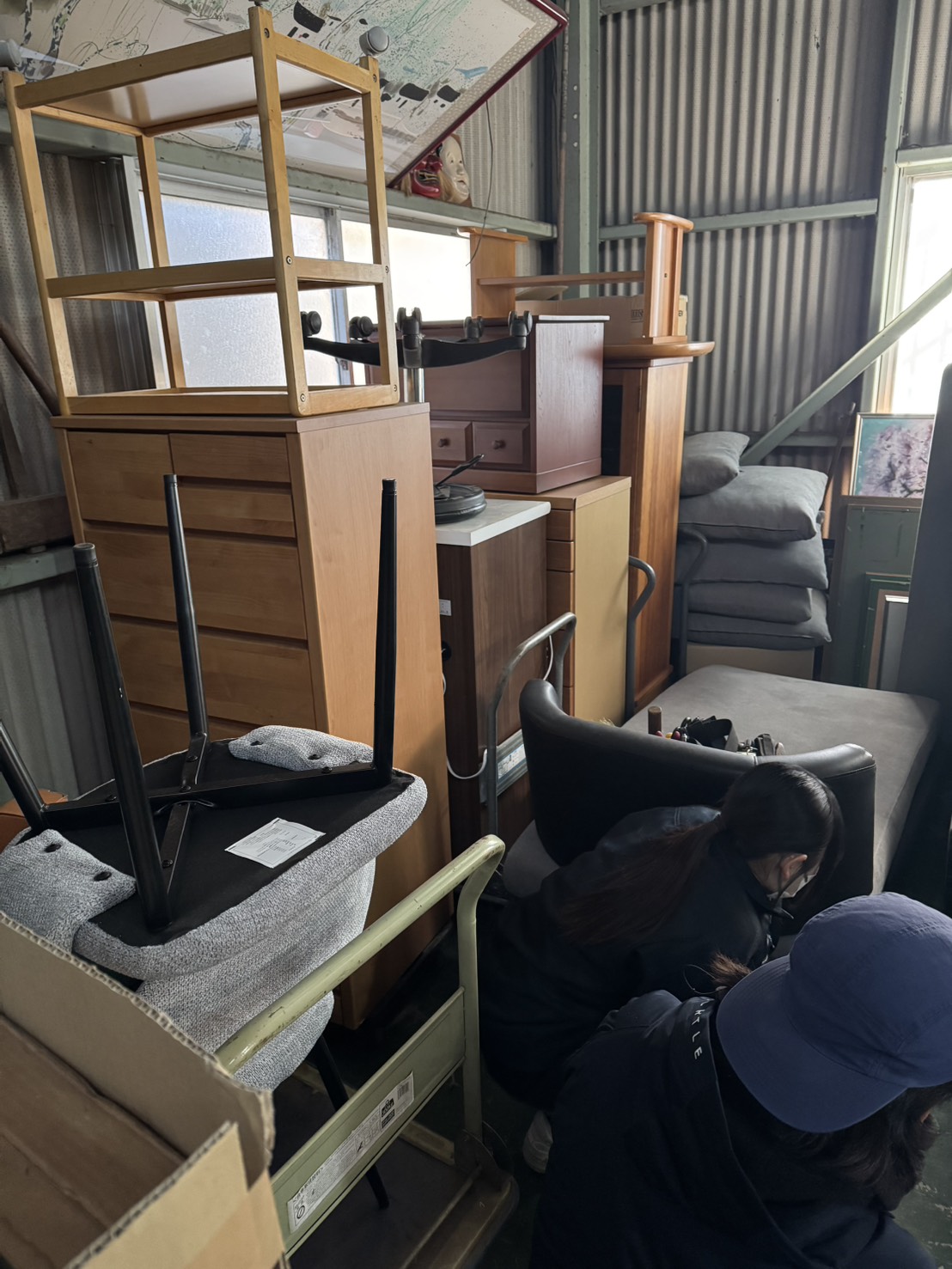 古物市場へ安全に運搬できるよう丁寧にまとめ作業を進めました。